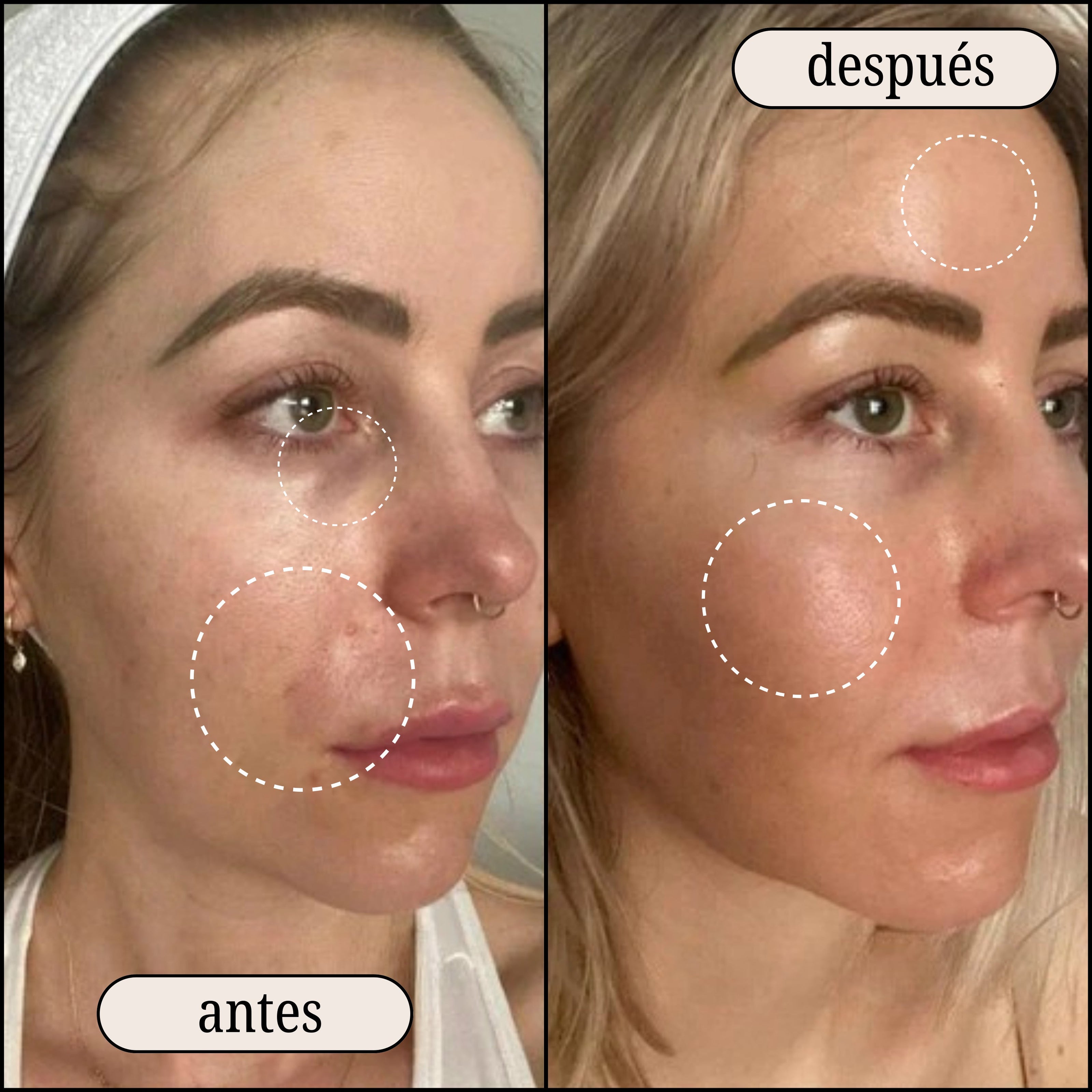 Noto un tono de piel más claro y uniforme después del tratamiento eliminando manchas.