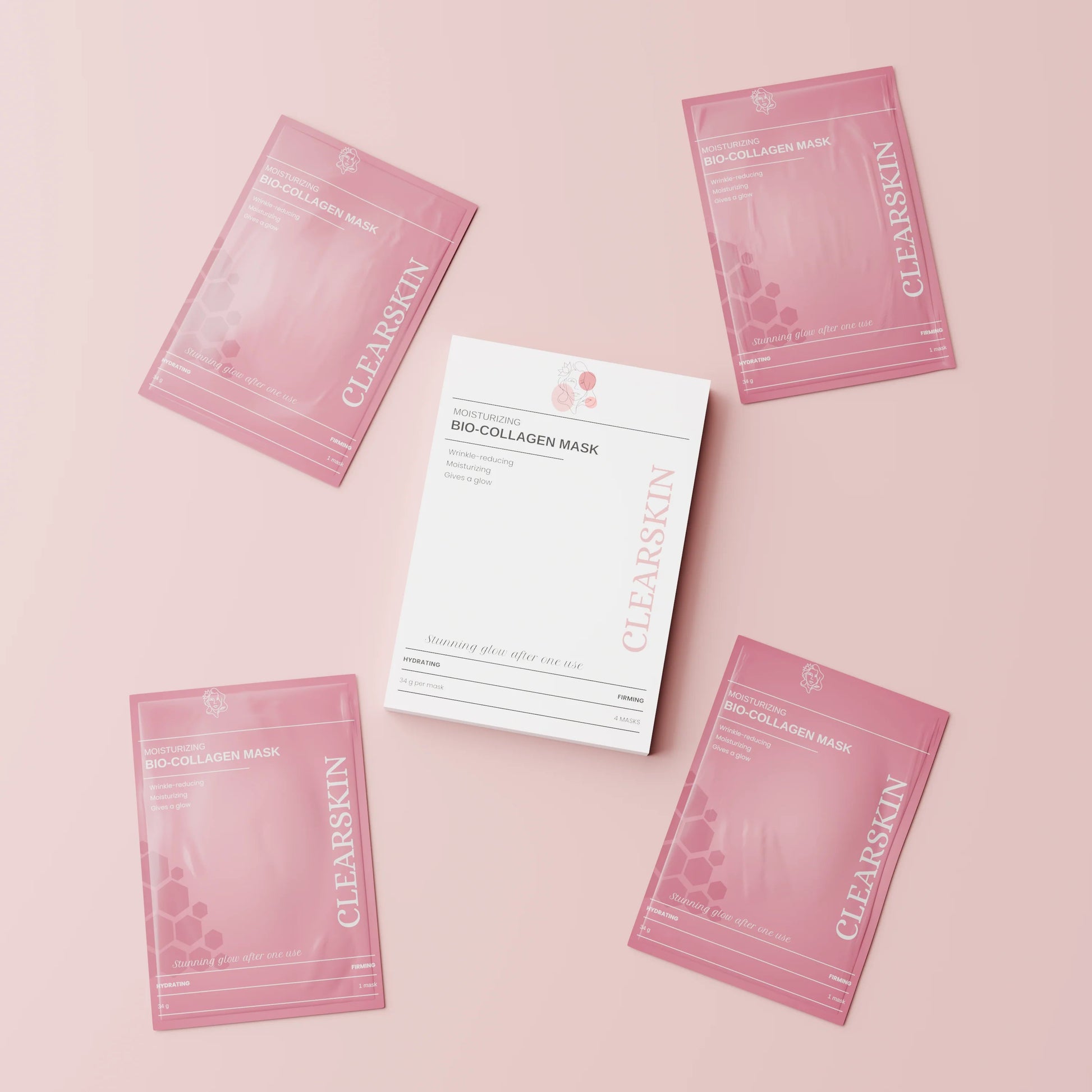 - Nuestra mascarilla de ClearSkin enriquecidas con colágeno hidrolizado, niacinamida y extractos de plantas naturales, nuestras mascarillas proporcionan una hidratación profunda y reduce las arrugas.